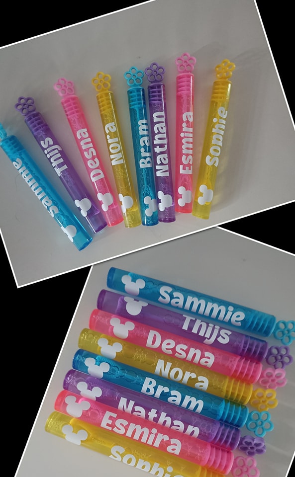 Op zoek naar een originele en vrolijke traktatie? Onze mini-bellenblaas met naam zorgt gegarandeerd voor blije gezichtjes!